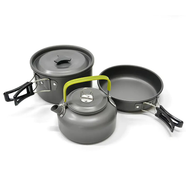 Aluminous Trekker's Trio: Portable Cookware Set for 2-3 Adventurers