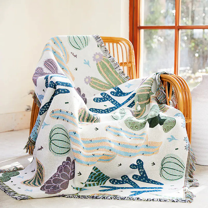 With a generous size of 130x160 cm, it provides ample coverage for you and your loved ones. The vibrant patterns, ranging from Jungle Mushroom to Tropical Leaves, are inspired by nature and will add a touch of elegance to any setting. Whether you prefer the earthy tones of Jungle Mushroom (Brown) or the lively design of Cactus, there’s a color to match your personality and decor.