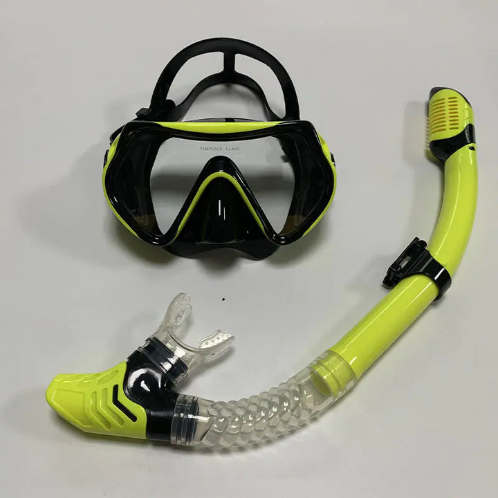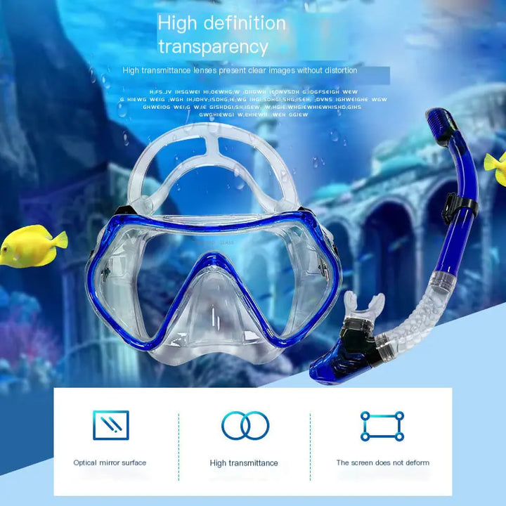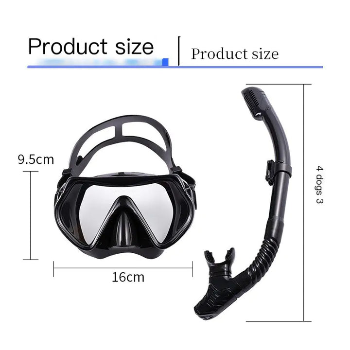 Dive into adventure with our Full Face Snorkeling Mask and Breathing Tube Set. This premium diving kit is crafted with food-grade liquid silicone and features a stunning high-definition tempered glass for a crystal-clear underwater experience. Whether you're floating, diving, or swimming, this mask ensures maximum comfort and safety.