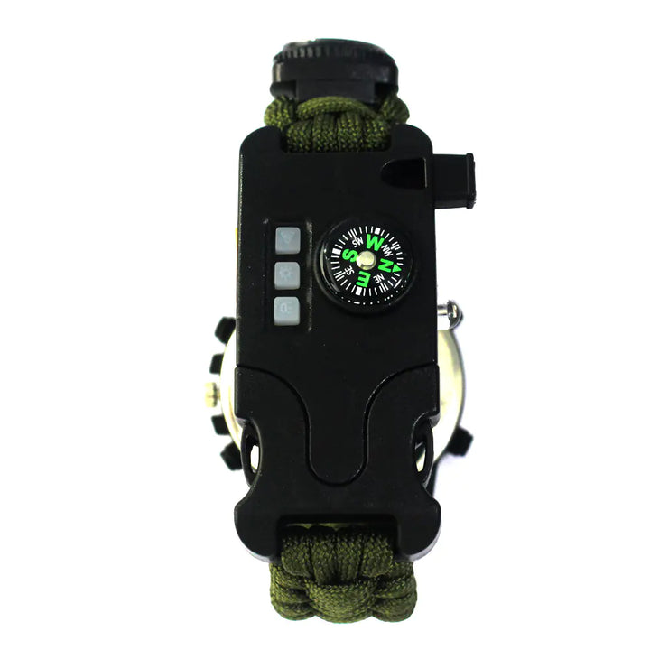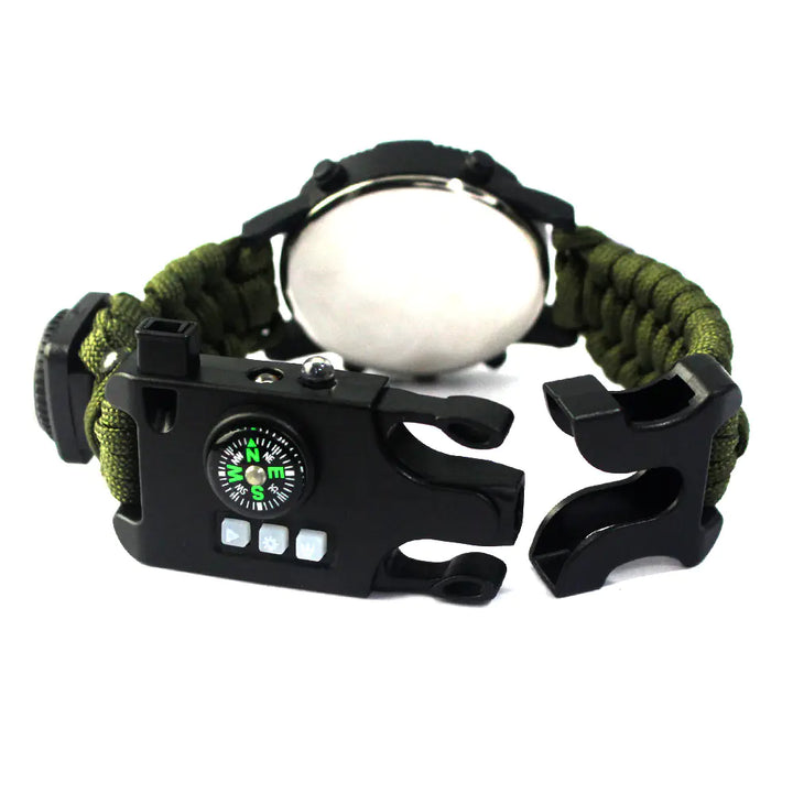 What sets this watch apart is its removable umbrella rope, which can be disassembled into approximately 2.2 meters of strong cord—perfect for emergencies or setting up camp. Whether you're camping, hiking, or just enjoying the great outdoors, the survival watch is an essential addition to your gear.