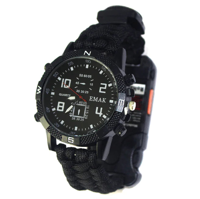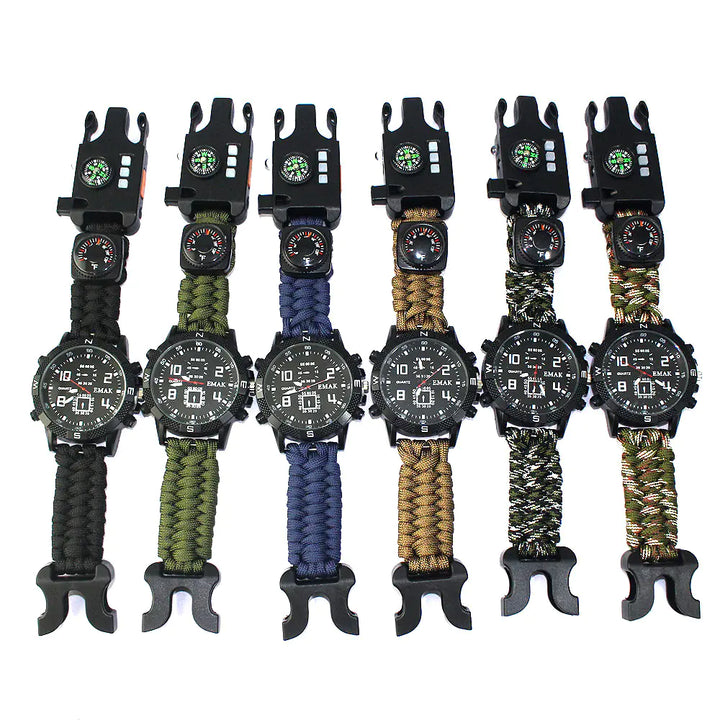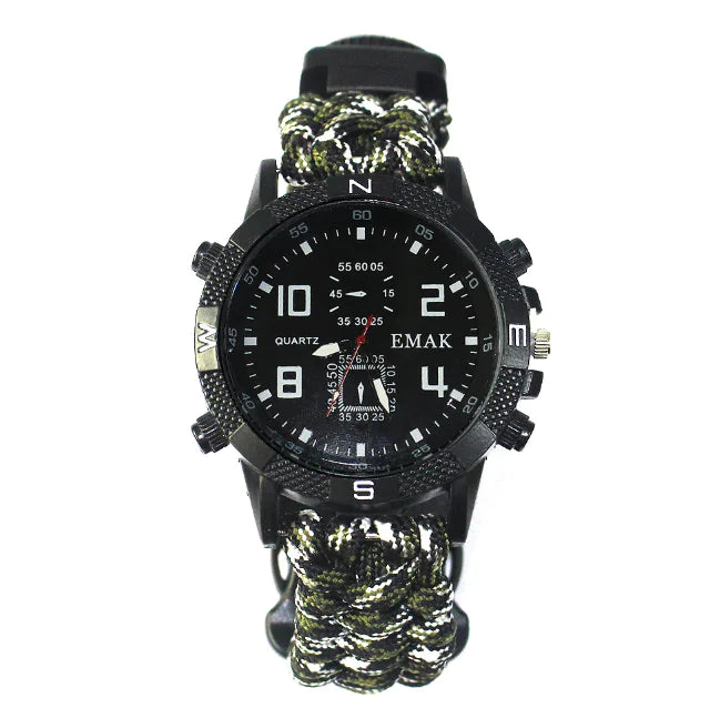 Discover the ultimate survival companion with our Multi-Functional Survival Watch. This innovative timepiece is not just a watch; it’s a survival tool designed for outdoor enthusiasts and adventurers alike. Made with a durable umbrella rope braided bracelet, it combines practicality and style, ensuring you’re prepared for any situation while keeping time in style.