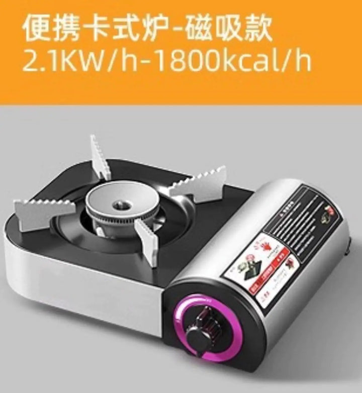 The stove is powered by butane, ensuring efficient and reliable cooking performance. You can choose from various specifications, including options with a suitcase for added convenience.