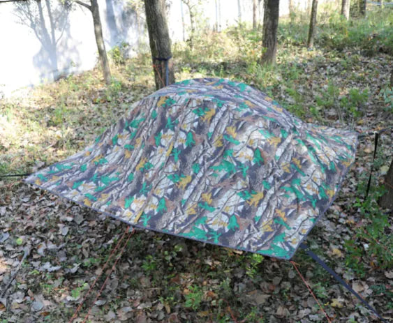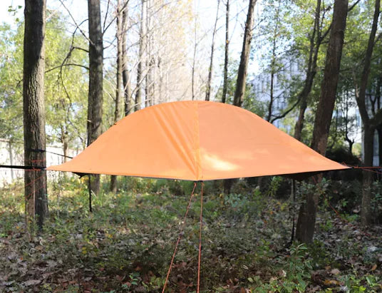 Experience comfortable camping above the ground with this ultralight suspended hammock tent. Designed with a mosquito net, waterproof fabric, and sturdy aluminum poles, this tent keeps you dry and bug-free. Unlike ordinary hammocks, its spacious and tensioned design provides a flat sleeping area for a good night’s rest. Easy to hang between trees, it is perfect for mountaineering, fishing, survival, or outdoor adventures. Package includes tent, poles, stakes, ropes, and storage bag. Suitable for use on dry grass or beaches.