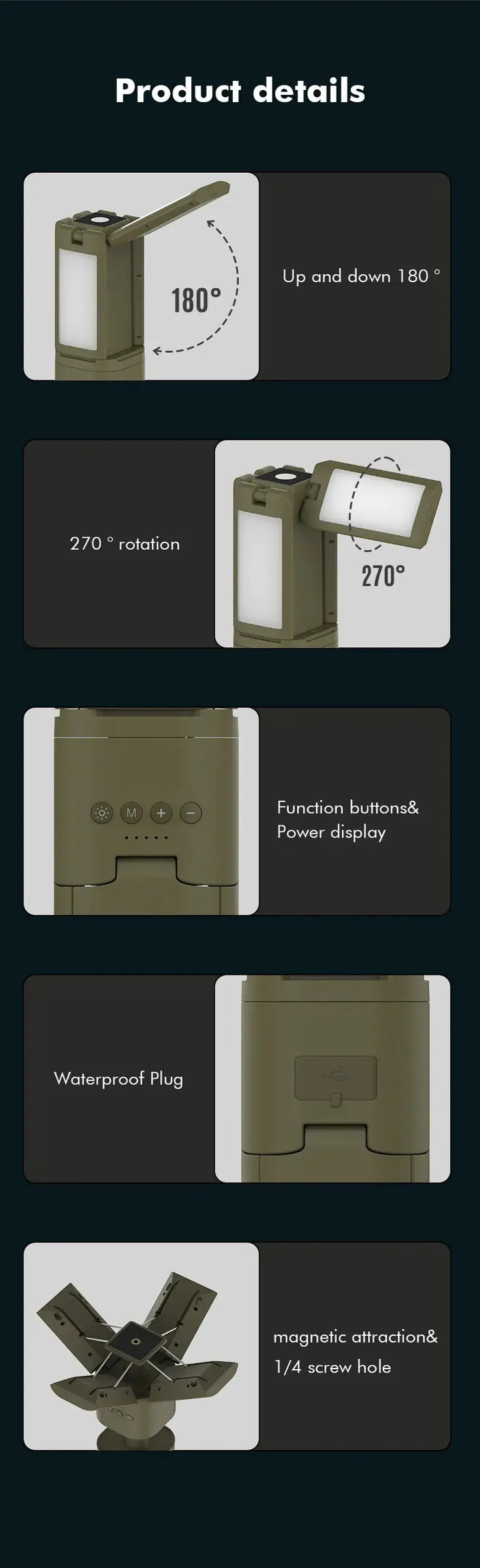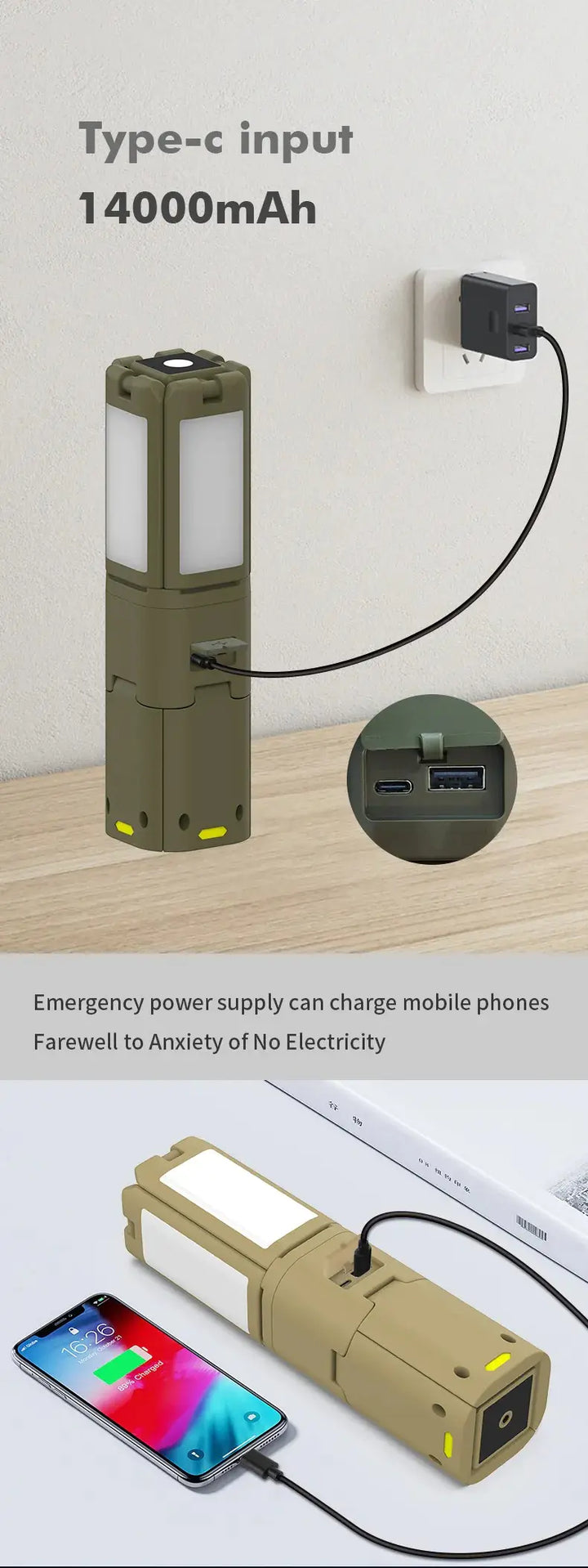 Light up your adventures with this Folding Camping Lantern featuring a powerful 14,000 mAh battery for ultra-long life. Designed with functionality in mind, it also includes a built-in Bluetooth speaker—perfect for outdoor trips, camping, and emergency use. Its compact, foldable design and magnetic base make it easy to carry and mount anywhere.