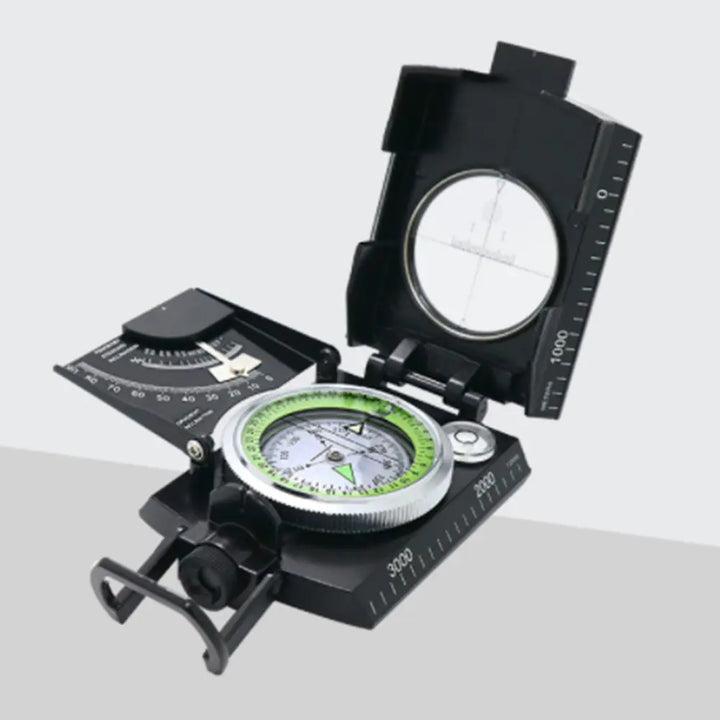 Multifunctional geological compass with night light. Made of durable ABS plastic. Includes measurement and directional functions. Packing list: 1 compass. Size: 110×76×41mm.