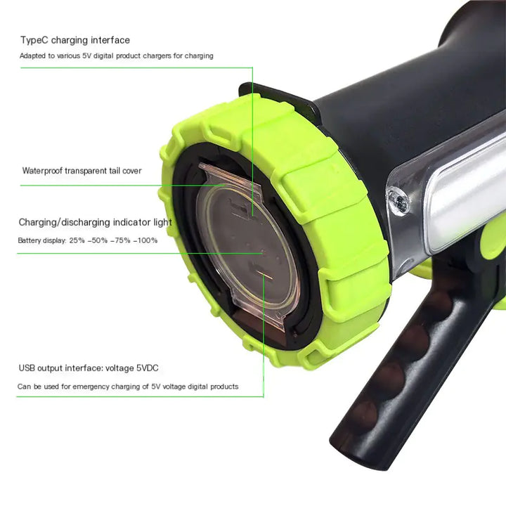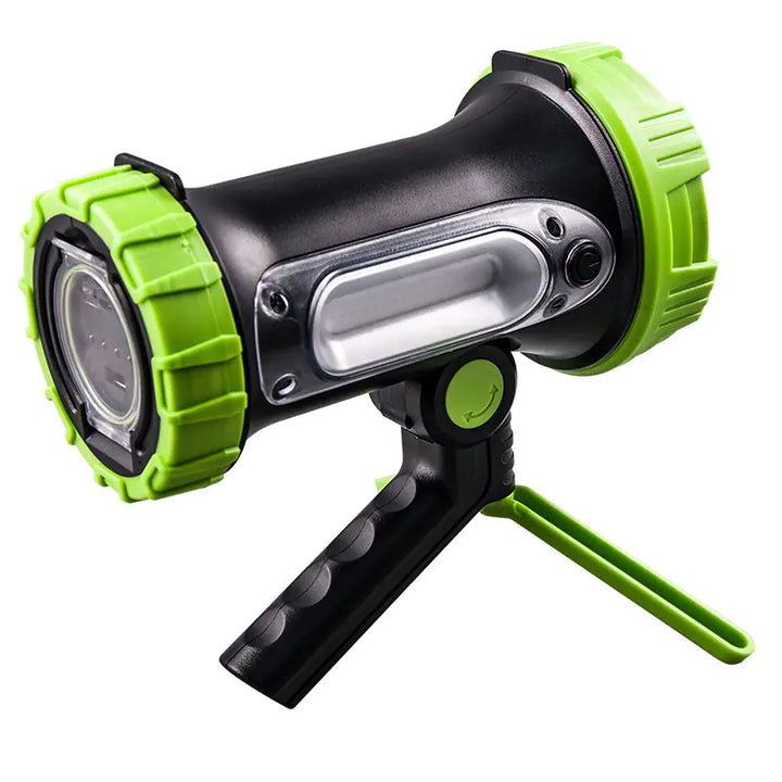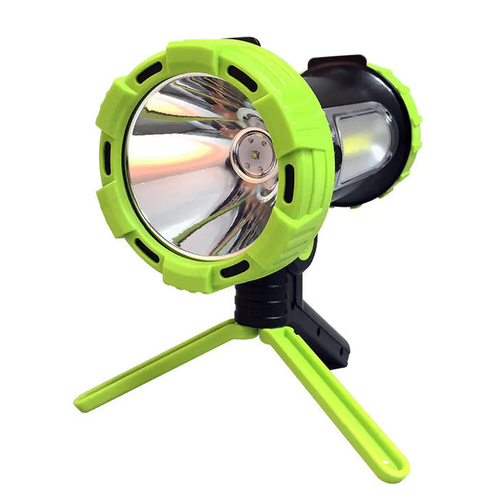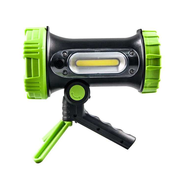 Lightweight and compact, this flashlight is easy to carry, weighing just 0.6 kg, and its dimensions of 13cm x 27cm x 22cm make it convenient to store in any backpack. Available in a striking green color with bilateral lights, it’s not only functional but also stylish.